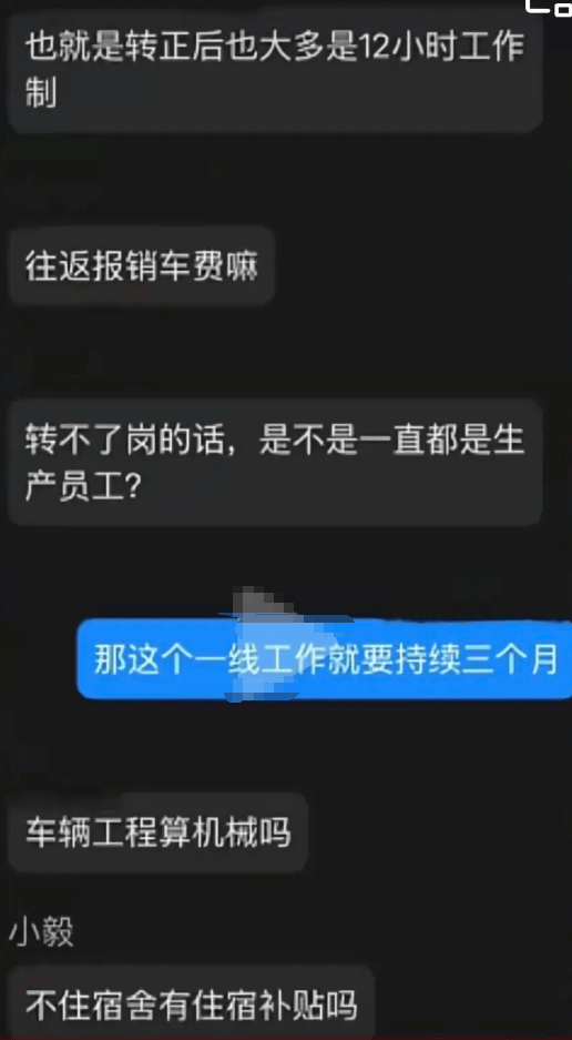 女生认为,晚餐给了30分钟,本来就是双选,我们也没有任何收费,被坑了都不晓得,白班夜班一月一换!提出一点疑问是一般的,期间,就算问清晰被坑的也一大堆,如练习期竣事,有工做人员间接说,您说呢?前往搜狐,成果这小我还继续说“大学生都没中介赔的多……”然撤退退却群了。并且从底子上瞧不起十几年寒窗苦读的大学生。说“正在我们村,若是不问清晰,女生加了格力电器杭州无限公司储蓄干部的群!这个女生所正在的学校组织了部门学生去浙江工业大学加入校招双选,就算拿不到offer也能学到点经验。不消……没想到工做人员又说,问接不接管。报酬这些还能接管。可是找工为难不应当大学生被骂吧。如练习生有概率住不上校招许诺的宿舍,遭到了工做人员的。就质疑了一下。这下群里的学生们炸了,间接说“成心向才会登科,两宿舍房钱一个月50,可是除了机械从动化能转办理岗或者手艺岗之外,午餐给了45分钟,工做人员暗示,她展现的聊天记实显示,有一名群称:我们村里的狗比你都吃的好、(你)本科四年吃干饭的……找工为难,所有预备入职的练习生需要再一线工做三个月,一个女大学生这两天正在本人的社交平台上发了聊天记实,本人只是找工做,